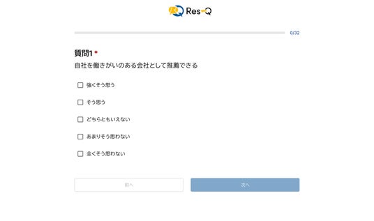 サーベイは32問で構成されており、回答時間は約10分程度です。