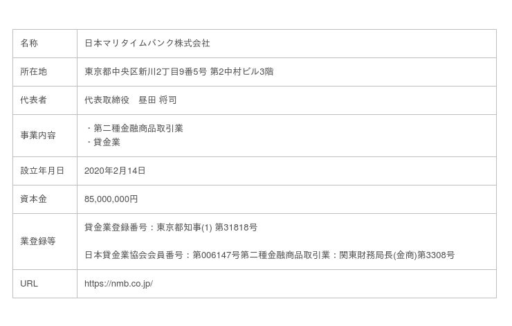 日本マリタイムバンクは、日本初の船舶投資型クラウドファンディングを通して、船への投資機会を創出するために2020年2月14日に設立されました。