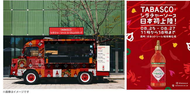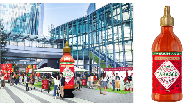 この度、約4年ぶりとなる新製品の発売に際して、渋谷・稲荷橋広場にて8月25日(金)から8月27日(日) までの3日間限定のポップアップイベント「TABASCO(R)シラチャ―ソース3-wayスタンド」を開催します。会場では、TABASCO(R)シラチャ―ソースの巨大ボトルやフードトラック、TikTok動画を撮影できる特設ブースが出現し、イベントを盛り上げます。 また、 TABASCO(R)シラチャ―ソースをご自宅でもすぐにお使いいただけるよう、販売テントもご用意しています。