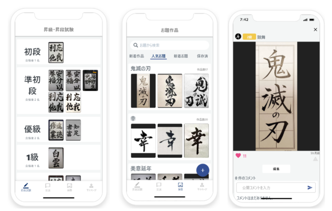 オンラインで昇級・昇段試験が受けられる基本無料のオンライン書道会サービスで、登録者は600名(4月6日時点)を超えています。昇級・昇段試験時に、課金を行うことで個別の解説動画を見ることが可能です。