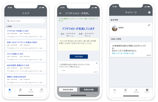 株式会社資産工学研究所様の、従来顧客企業様に紙で提供していたサービスを、アプリとして提供したサービスになります。機能としては、ナレッジの検索およびナレッジの習得や発揮を5段階評価で改善確認できるサービスです。