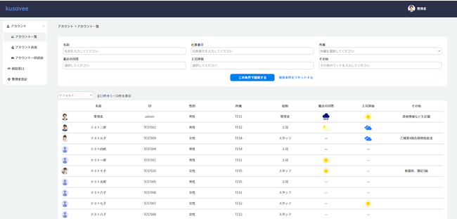 ・組織の階層機能(管理者・上司・スタッフ)。上司に属するスタッフのみ閲覧できる等実現しています。