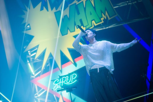前日の盛り上がりそのまま、2日のトップバッターをかざったのは、シンガーソングライターのSIRUP。大人気曲「LOOP」を含んだ全6曲を贅沢に披露し、SIRUPらしいステージとなりました。また、トークコーナーでは、初共演の粗品と軽快なトークを披露し、SIRUPの新たな一面を見ることができました。