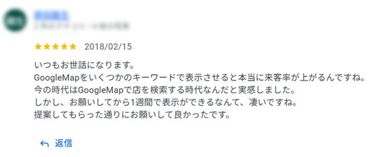 『マップ職人』のクチコミ返信画面1.