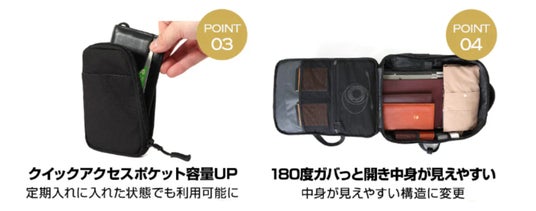さらにベルト部分のクイックアクセスポケットを廃止し、着脱可能なクイックアクセスポーチに変更。ケースに入れたICカード類もスムーズに出し入れすることができます。