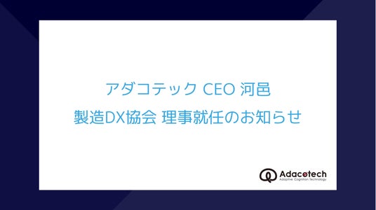 株式会社アダコテック(本社:東京都千代田区、以下、アダコテック)代表取締役CEO 河邑 亮太は、2024年7月1日に設立された一般社団法人製造DX協会(代表理事:林 英俊、以下製造DX協会)の理事に就任したことをお知らせします。