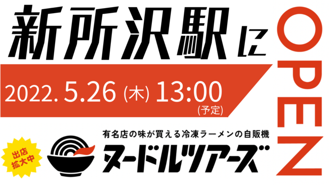 業務用麺類製造を行う株式会社丸山製麺 (本社:東京都大田区、代表取締役:丸山 和浩、以下「丸山製麺」)が運営する、日本初の東京の有名店のラーメンが購入できる冷凍自販機「ヌードルツアーズ(https://noodle-tours.com/)」が、西武鉄道新宿線新所沢駅にて販売を開始します。西武鉄道駅構内初設置となる新所沢駅を通じて、西武線沿線のお客さまのサステナブルでより豊かな生活の実現に貢献します。