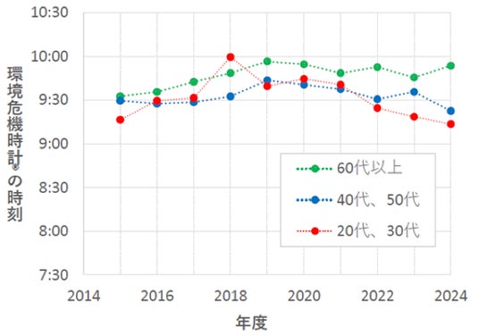I-2 回答者の年代層による環境危機時刻の推移 (2015年~2024年)