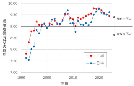 図3 1992年以降の世界と日本の環境危機時計(R) の時刻の推移
