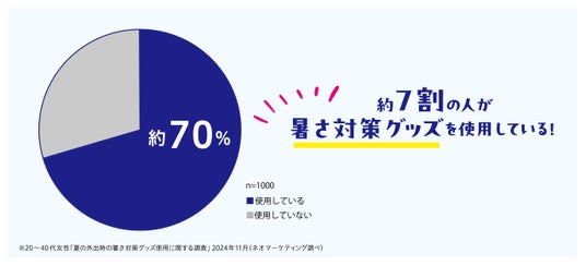 毎年の猛暑対策として、約70%の人が暑さ対策グッズを使用していることが分かりました。