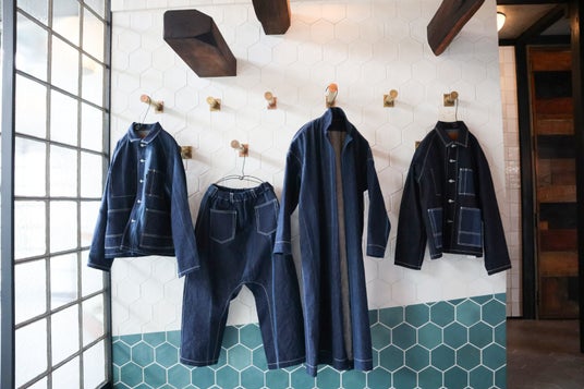 今回の作品は、デニムの産地広島県・福山市にて国産藍の栽培と藍染めに取り組む藍屋テロワール様と、高品質なデニムづくりに取り組む篠原テキスタイル様とともに創りました。