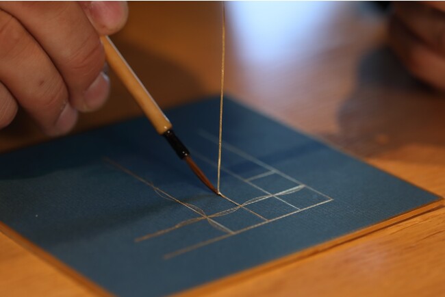 並木氏のワークショップでは、截金についての基本知識を学び、その技のデモンストレーションを間近に鑑賞することができます。また、琳派の図柄や紋様から切り取った季節の題材を、岩絵具や金箔を使って描きます。