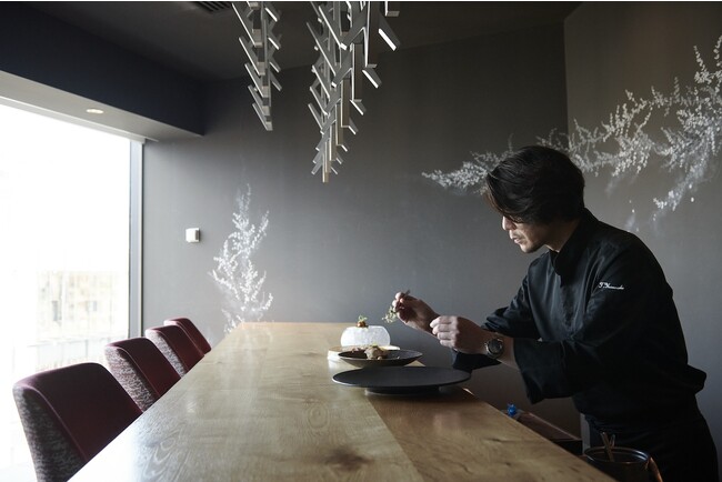 日本文化の世界で活躍する“匠”の技に触れた後は、一流シェフによる食の“極”を楽しむ時間。安中シェフが創り出す、高橋氏と並木氏それぞれの世界観をイメージした一品を組み込んだ限定ランチコースをご提供します。安中シェフなりの解釈で仕上げられた一皿は、手法は違えどまたひとつの芸術。カウンター席ならではの臨場感と共に堪能する美食のひとときです。