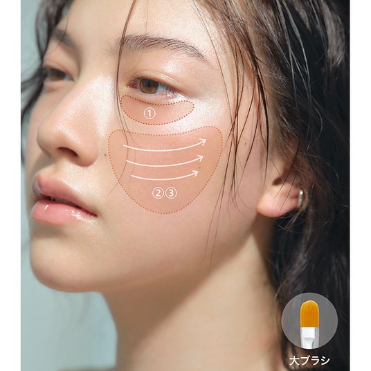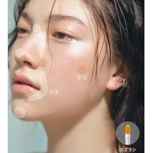 2.もしくは3.のポイントファンデーションを点置きした後、ブラシで優しくぼかしながら肌になじませると、ハイカバーでありながら、シームレスな肌に。