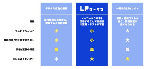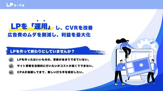 本サービスは、一般的なLPとは異なり、公開後も運用結果を分析しながら改善を重ねる「運用型LP」です。BtoB、BtoCを問わず、WEB経由での顧客獲得に課題を抱える多くの企業のコンバージョン率最大化を支援します。(https://lp.lp-works.jp/)