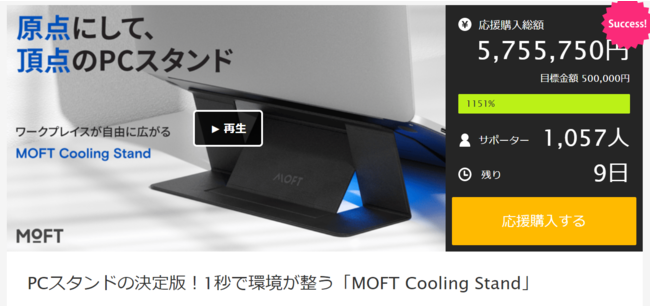 素材の力で冷却効果を発揮する「MOFT Cooling Stand」はMakuakeの先行予約販売にて、目標金額1000%超えの人気を集めています。