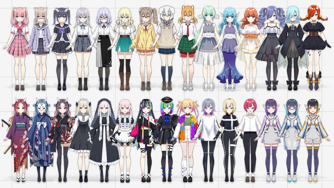 株式会社DELTA-Vは法人及び個人向けに配信用キャラクター提供サービス「汎用素体計画(はんようそたいけいかく)」を2022年3月1日に正式リリース致しました。株式会社DELTA-Vがオーガナイザー機能を有するLIVE配信プラットフォーム等において、”無料”でキャラクター全身立ち絵とLive2Dモデルを利用できるサービスとなります。今回、「汎用素体」全30種が完成しサービス正式リリースとさせて頂きます。