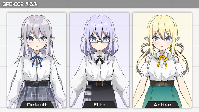 1モデルにつき「Default」「Elite」「Active」の3タイプを実装予定。自身のキャラクターテーマに合わせて選択可能。