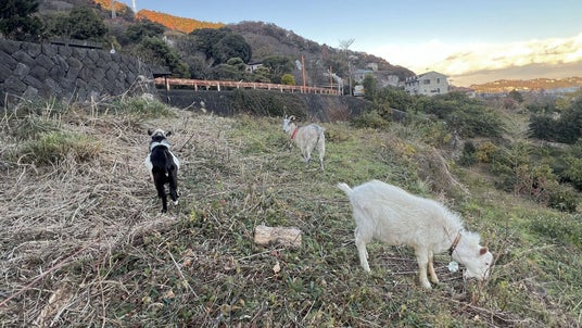 現在、神奈川県湯河原町の自社牧場にて9頭のヤギを飼育し、放棄地を対象に実証試験を進行中です。ヤギたちは雑草を食べながら土地をゆるやかに維持し、機械除草や人力管理に比べて極めて低コストかつ自然な方法で、景観維持と獣害リスク低減に貢献しています。