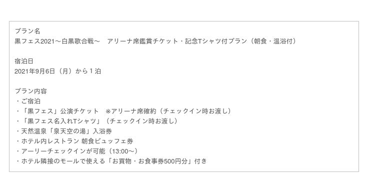 第1弾:「⿊フェス」ファンにはたまらないプレミアムな特典が盛りだくさんの限定プラン!「黒フェス」チケット付宿泊プランの販売