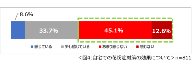 ■自宅での花粉症対策に効果を感じていない人が約6割。
