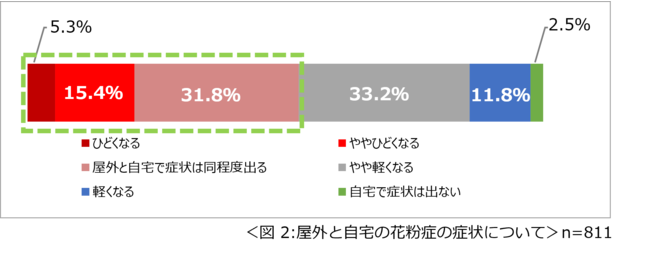 自宅内でも 屋外 と比べ症状が軽減されない人が過半数に。