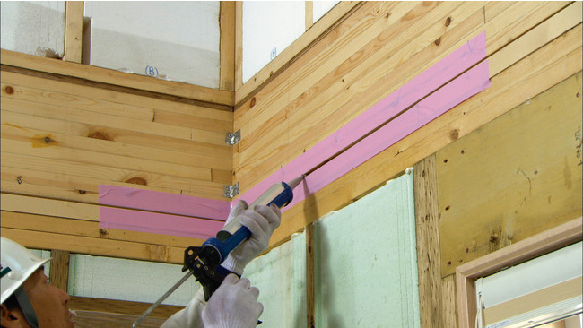 建築現場では、パネル同士の接合部にわずかな隙間もできないように、シーリングや気密シールなどの施工を行います。これにより、床下から天井まで、隙間のない家が完成します。