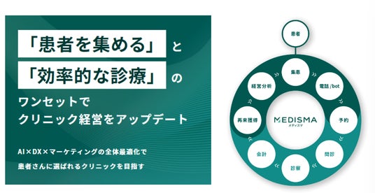 医療業界では昨今、人手不足が深刻化しており、AI・ITを活用した業務効率の改善が急務となっております。当社は、医療DXの一翼を担うべく、企業ミッション「医療を便利にわかりやすく」をより推進すべく、創業より培ってきたクリニックの集患・マーケティング支援を一貫して行ってきた強み、またWEB予約・WEB問診事業の統合を経て得た新たなナレッジを活かし、集患・マーケティング、電話受付、予約、問診・カルテ作成、会計決済をはじめ、クリニック経営に必要な一連のシステム・サービスを事業展開の中核と位置付け、新サービス・ブランド「MEDISMA」シリーズとして提供を開始致します。また、それらのサービスから様々なデータを集計、分析することでクリニック経営を多角的・総合的に支えて参ります。