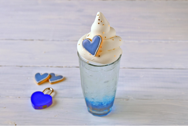 可愛らしいハート型のアイシングクッキー「カラーポップクッキー」はソーダフロートとコーディネートできます。