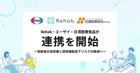 エーザイ株式会社hhcceo事業戦略部(東京都、以下 エーザイ)は、このたび、株式会社Rehab for JAPAN(東京都、以下 Rehab)、日清医療食品株式会社(東京都、以下 日清医療食品)と 、高齢者の低栄養状態や認知機能低下のリスク軽減に向けた連携を開始したことをお知らせします。