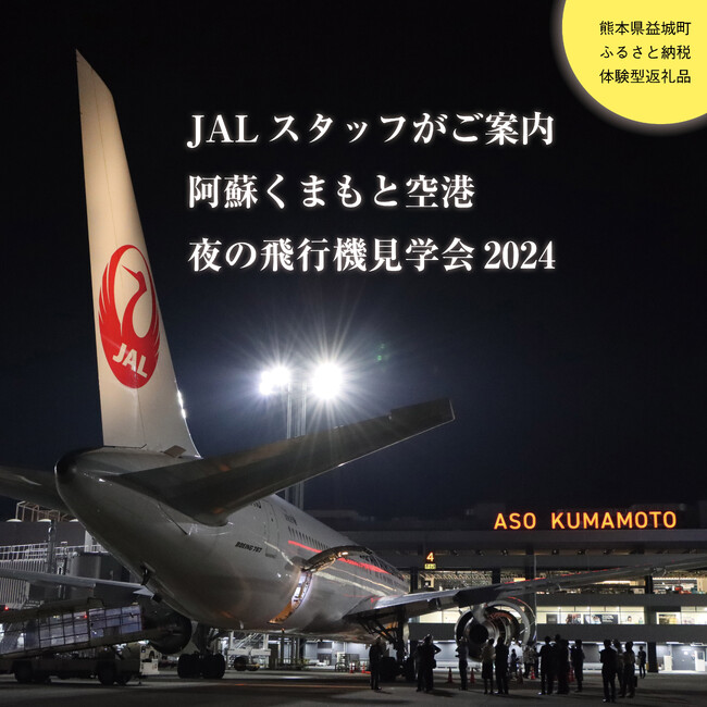 益城町と連携協定を結んでいる日本航空株式会社(JAL)が、令和5年6月に実施し好評いただいた、益城町ふるさと納税体験型返礼品のイベントを「JALスタッフがご案内!阿蘇くまもと空港 夜の飛行機見学会2024」として再出品し、令和6年1月11日から受け付けを始めました。