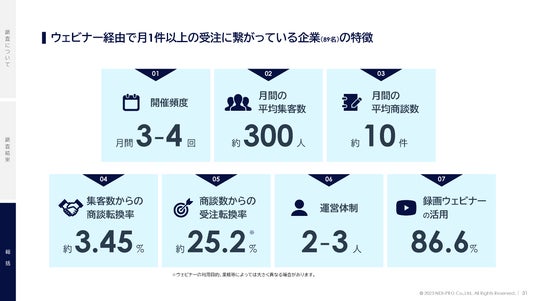 ウェビナー経由で月1件以上の受注につなげている企業には以下の共通点が見られました。
