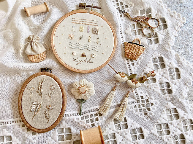 デンマークの手芸学校に留学経験を持つクリエイターによる、刺繍糸以外の異素材の糸を使用した刺繍のクラス。刺繍をする上で大事な基礎知識はもちろん、応用技やデザインの幅の広げ方など、丁寧な解説と共に、素敵な刺繍アクセサリーを作ります。