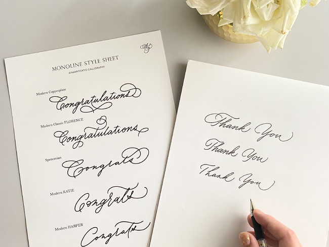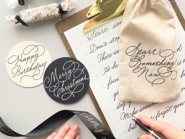 ボールペンやサインペンなど、身近なものを使い、オシャレで綺麗な文字を書く「モノラインカリグラフィー」のクラス。様々なスタイルの文字を習得し、ネームカードやラッピングペーパーなどの作品を作ります。また、作品を素敵にスタイリングする方法や撮影、編集のコツも学べます。