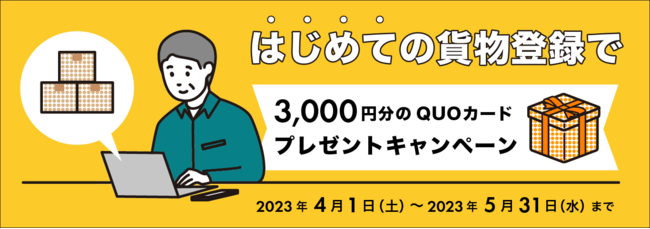 ~はじめて貨物を登録いただくと3,000円のQUOカードをプレゼント~