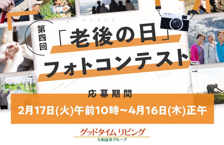 グッドタイムリビング株式会社(本社:東京都中央区 代表取締役社長:河合 淳)は、2026年2月17日より、第4回「老後の日」フォトコンテストの応募受付を開始いたします。本コンテストは「あなたのグッドタイム!」をテーマに、シニアの皆さまの日常や、家族や仲間との笑顔、一生懸命に向き合った「介護」の思い出などを収めた写真を募集するもので、6月5日の「ろうごの日」(神戸市老人福祉施設連盟制定)に向けて開催いたします。第1~2回選考にて選出・発表する「優秀賞」(合計8作品)の中から「グッドタイム大賞」(最優秀賞)として1作品を選出し、6月上旬に発表いたします。