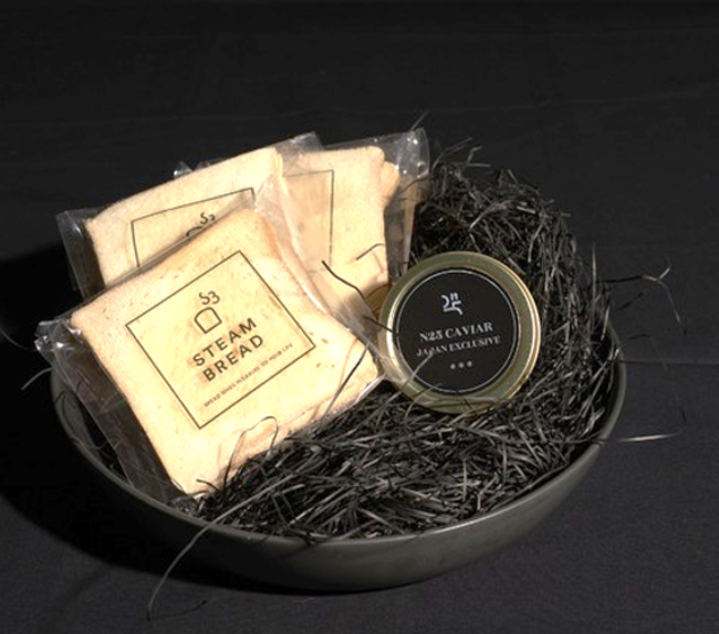 本物の味を追求するシェフや至高を求めるセレブリティー達の間で不動の人気のN25ブランド。直径3ミリを超える魚卵のみN25を名乗ることができ、大粒で健康的な魚卵でなければ、長期間の熟成に耐えることが出来ない厳選されたキャビア。最高峰の技術と衛生的で最新の設備を持つファームで生産された最高クオリティのキャビアをSTEAMBREADのオリジナルバゲットと一緒にご提供いたします。