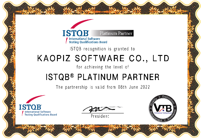 ISTQBは世界で最も信用のあるソフトウェアテストに関する国際的な資格認定機関の一つです。この度、ISTQBパートナープログラムにおいて「ゴールドパートナー」として3年連続で認定されたカオピーズは品質技術およびテスト技術の向上に尽力している点が評価され、「プラチナパートナー」に昇格しました。