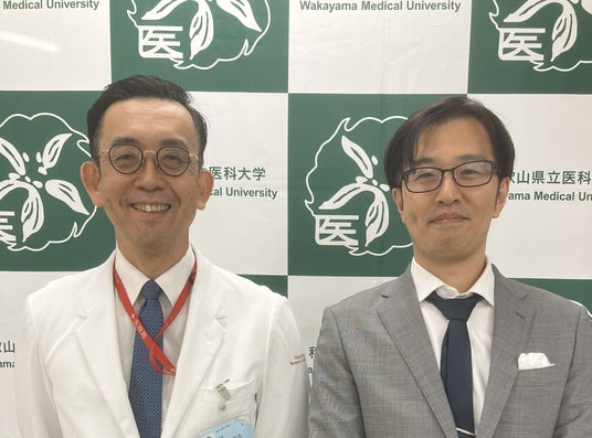 記者会見にて(左:和歌山県立医科大学附属病院 / 救急・集中治療医学講座教授、高度救命救急センター長 井上茂亮先生、右:株式会社CROSS SYNC 代表取締役CEO 田中正視)