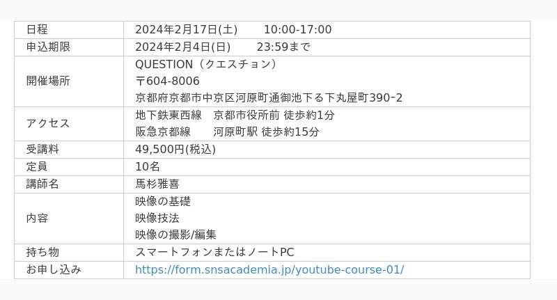 SNSアカデミア Youtube講座 https://snsacademia.jp/youtube-masugi/