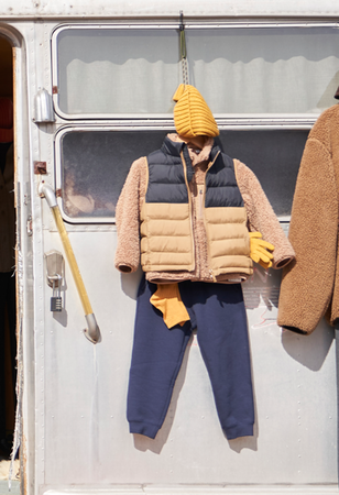 ・防風フリースで親子コーディネートを楽しみつつ、パデッドベストを合わせたお洒落レイヤード