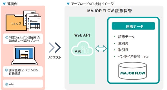 「MAJOR FLOW 証憑保管」に自動的にアップロードすることを可能にします。