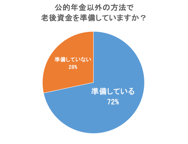 「公的年金以外の方法で老後資金を準備していますか?」という質問では、72%が「ある」と回答し、「ない」は28%という結果でした。
