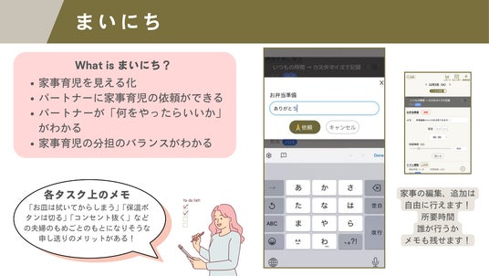 時間がなくコミュニケーションがとりにくい共働き家庭で「片方に負担が偏りがちな家事育児」を解決し、家庭内のウェルビーイングを向上させるツールとして注目を集めています。