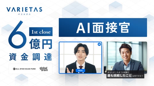大手企業向け対話型AI面接「AI面接官」を開発・提供する株式会社VARIETAS(読み方:バリエタス、以下「VARIETAS」)は、SaaSスタートアップに特化したファンド「ALL STAR SAAS FUND」、国内最大級の運用総額を誇るファンド「グローバル・ブレイン」をコリード(共同リード)とし、リード投資家2社を引受先とした第三者割当増資で総額6億円を調達しました。