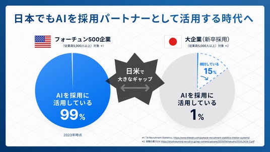 VARIETASが展開する採用領域のAIエージェントは、人材不足・採用競争が激化する日本において計り知れない可能性があると考えています。世界のFortune 500企業ではAIを活用した採用活動はもはやスタンダードになりつつある一方、日本でAI活用ができているのは未だ数%。