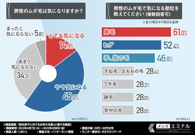 ここまでの調査で、半数以上の方が男性に対してムダ毛を処理してほしいと思っていることがわかりました。