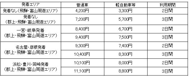 販売プラン・価格の詳細については、NEXCO中日本公式WEBサイトをご確認ください。
