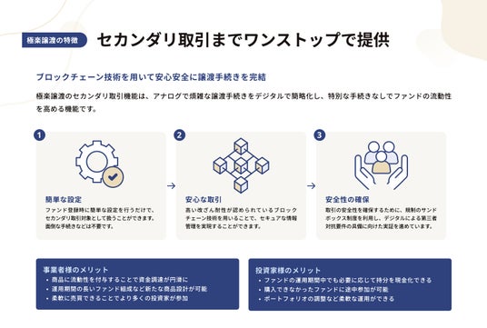ファンド登録時に簡単な設定を行うだけで、セカンダリ取引対象として扱うことができます。面倒な手続きなどは不要です。
