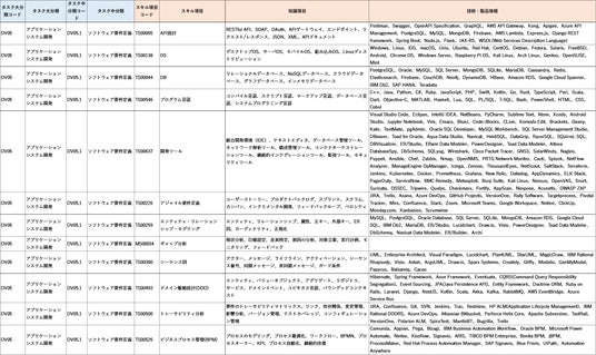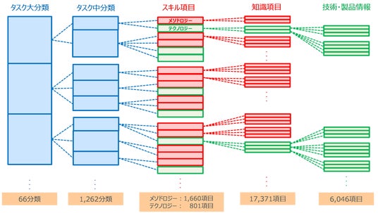 改訂にあたっては、これまでのスキルディクショナリーとして独立した構成から、タスクオリエンテッド(タスク中分類に紐づけ)な形で整理しなおし、ユーザーが使いやすいように作成しております。
